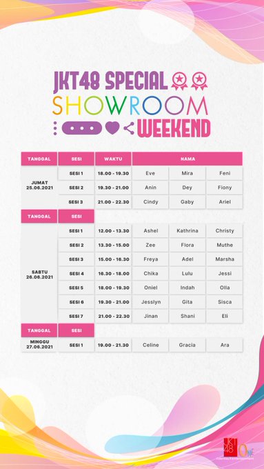 Gita Sekar Andarini@A_GitaJKT48 -- Berarti cuaca mendukung twitter.com/officialJKT48/… JKT48 Selamat Siang! Pelaksanaan Request Hour mungkin diundur, tapi di akhir minggu ini, seluruh member JKT48 akan menemanimu melalui Showroom!Cek schedulenya di bawah ini ya! pic.twitter.com/ZO4pcOURGv