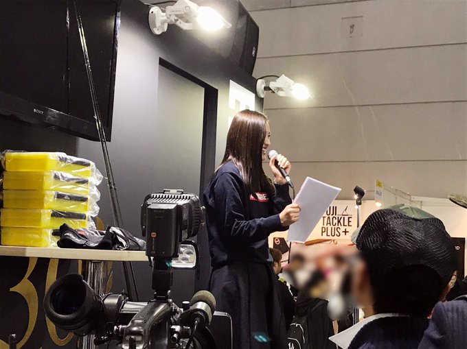#西日本釣り博2018 にて展開されている #EVERGREEN さんのブースに、今田美奈がお邪魔しました!緊張のステージMCを務めさせていただきました☺️