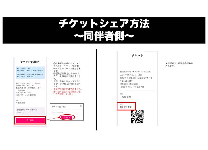 同伴者の方は代表者より「チケットシェア」していただくことにより、顔認証後ご自身の端末で座席番号の確認ができますよっ!