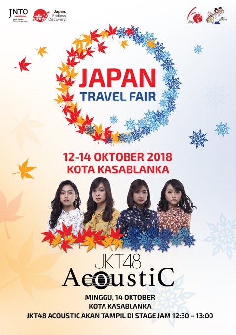 JKT48@officialJKT48 Jangan lupa, besok pada tanggal 14 Oktober 2018, JKT48 Acoustic akan tampil di Japan Travel Fair, Kota Kasablanka pada pukul 12:30 WIB. Yuk, datang dan ramaikan! #JKT48Acoustic pic.twitter.com/KETc4K3CAz