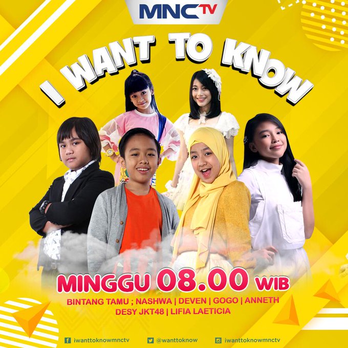 Saksikan @M_DesyJKT48 di program acara I WANT TO KNOW @Official_MNCTV di hari Minggu, 17 Februari 2019 pada pukul 08:00 WIB. Jangan sampai kesiangan ya! #DesyJKT48WantToKnow pic.twitter.com/jg2QZkTrOJ