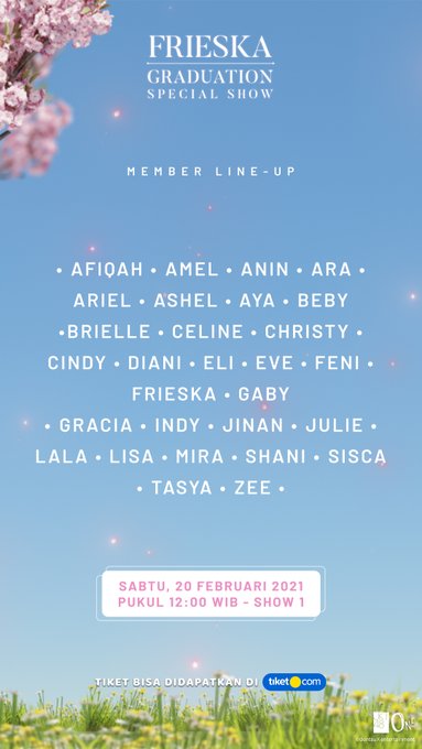 Selamat siang semuanya. Sebentar lagi kami akan mengadakan Frieska Graduation Special Show. Ini adalah member-member yang akan tampil sebentar lagi. Sampai bertemu! pic.twitter.com/kqTbjYMQpC