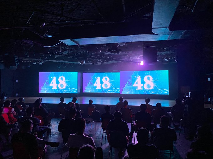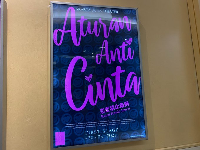 Sebentar lagi pertunjukan Renai Kinshi Jourei - Aturan Anti Cinta show 2 akan dimulai! Kira-kira bentuk cinta seperti apa yang akan ditunjukkan ya? #AturanAntiCintaJKT48NewEra