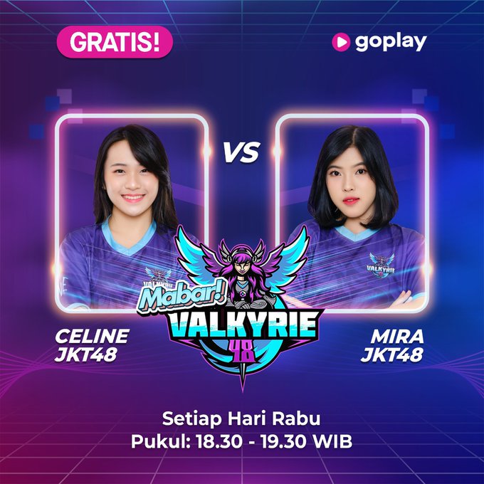 Yuk! Jangan sampai kelewatan ya hari ini audisi mabar bareng @Celine_JKT48 dan @F_MiraJKT48 malam ini dalam program “Mabar! Valkyrie48” pukul 18.30 WIB, livestreaming hanya di @GoPlayIndonesia ! bit.ly/GoPlayLive_JKT… pic.twitter.com/Fw0n4utDqG