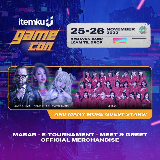 JKT48 akan tampil di itemku gamecon pada hari Sabtu, 26 November 2022 di Senayan Park! Catat tanggalnya dan jangan lupa datang ya! pic.twitter.com/2G8awRQHkb