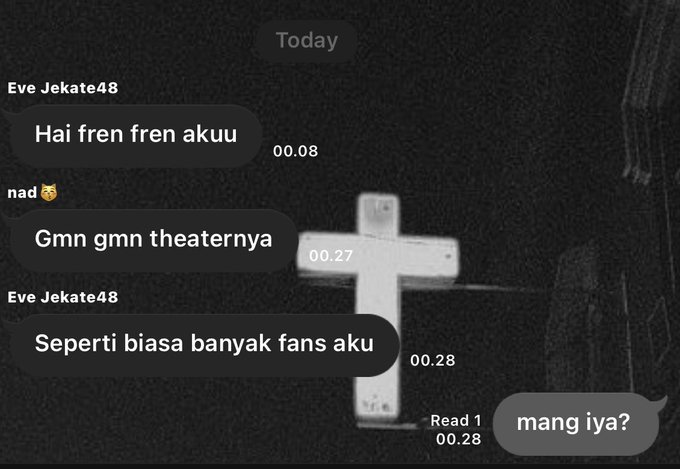 Eve Antoinette Ichwan@Eve_JKT48 @nadilawantari_ Wkwkwkw kenapasii, traktir babi tapi, kaka boleh gak? :(