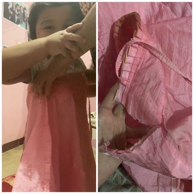 tadi adekku masuk mukena ku terus gabisa keluar guys kasian banget tapi kocak.. nyangkut dia trs terpaksa dirobek demi keselmatan dia😂 untungnya dia gapapa dan anteng pas nyangkut pic.twitter.com/2vPK96CIkR