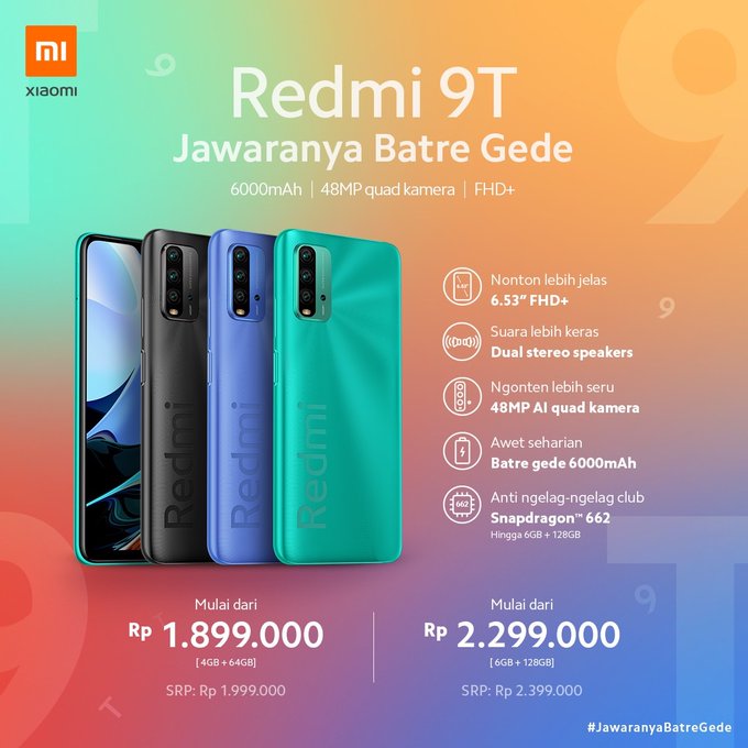 Hi Guys hari ini Redmi 9T launching lho. Banyak banget keunggulan dari handphone Redmi 9T. Dan pastinya baterenya awet seharian karena #JawaranyaBatreGede.