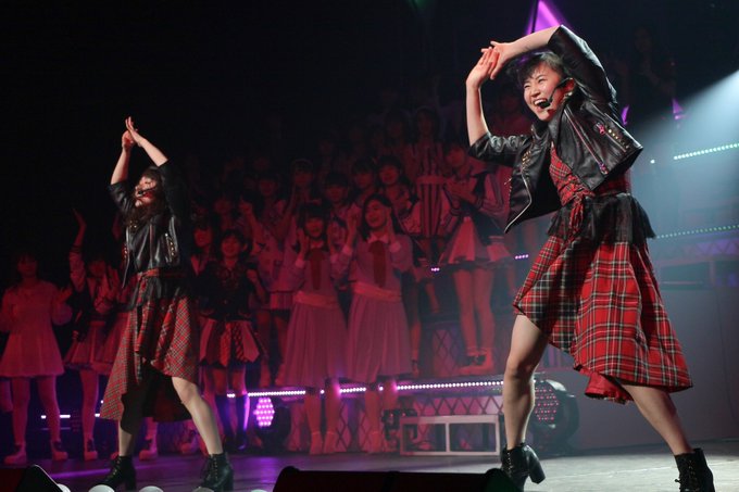 登場前、ステージ裏で2人は抱き合って喜んでいました。聞くところによると、SKE48高柳明音先輩がNGT48の楽曲の中で特に気になった楽曲だそうです。