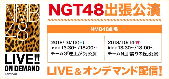 今日と明日、NMB48劇場で行われるNGT48の出張公演は、NGT48 LIVE!! ON DEMANDはもちろん、NMB48 LIVE!! ON DEMANDでもご覧いただけますので、この機会に是非。