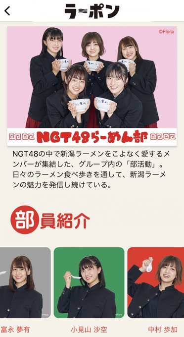 日付が変わった瞬間に、#ラ〜ポン の「#NGT48らーめん部 の部室」にある、これまで名前と写真だけだった「部員紹介」が…。