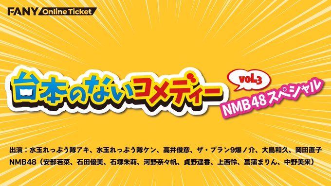 会場チケットに関して、#台本のないコメディー のみ当日券のご用意がございます!ぜひNMB48劇場前にお越しください!