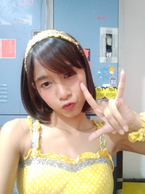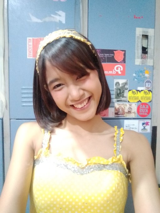 Febi Komaril@K_FebiJKT48 Aku ga tau beneran, td aku niatnya mau barengan warna kuning sama kaya rifa eh dia ganti jadi pink😪