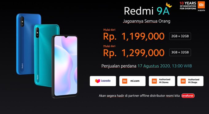 Rinanda Syahputri@S_NandaJKT48 -- Kerendah Xiaomi twitter.com/atytse/status/… Alvin Tse #MiFan #Redmi9A, Jagoanya Semua Orang, starting at just Rp.1.19juta for 2+32GB and Rp.1.29juta for 3+32GB 🔥🔥🔥 pic.twitter.com/fP8ZV0vy4r