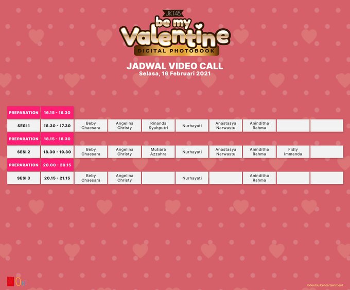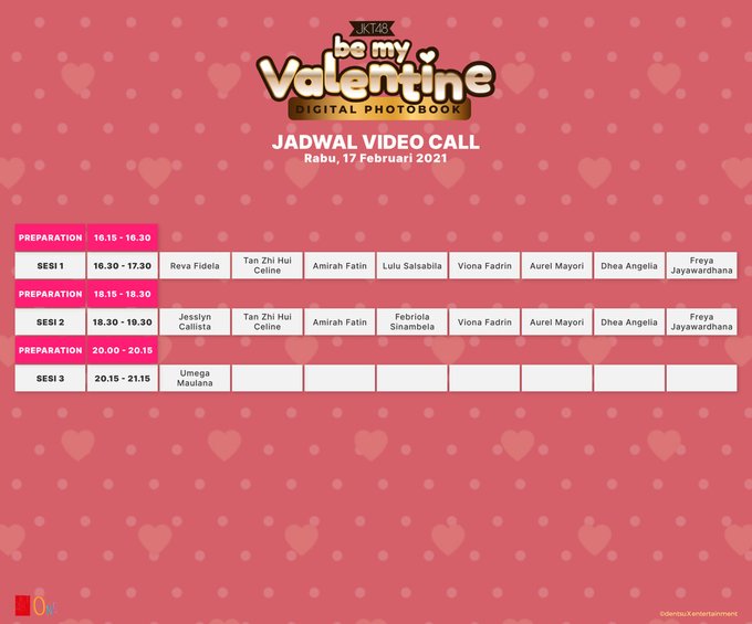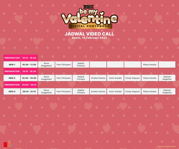 Riska Amelia Putri@R_AmelJKT48 -- gas! 🌸 twitter.com/officialJKT48/… JKT48 Setiap pembelian 8th Digital Photobook "Be My Valentine" akan mendapatkan bonus Video Call bersama member JKT48. Berikut jadwalnya: pic.twitter.com/JLvrL0oKQF