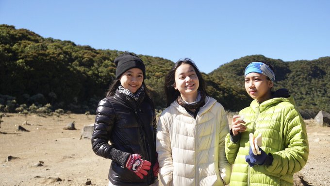 Rona Anggreani@Ayen_JKT48 @S_SiscaJKT48 Wkwkwkwkwk kita di gunung yg berbeda 🤣🤣 btw u vampir ya? Hebat bet ga pake jaket 🤔🙃