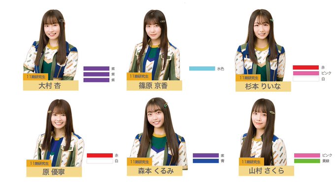 SKE48 11期研究生@11kisei_SKE48 -- 📣お知らせ📣#SKE48 #11期研究生 の #メンバーカラー が決定しました‼️#大村杏:紫、紫、紫#篠原京香:水色#杉本りいな:赤、ピンク、白#原優寧:赤、白#森本くるみ:紫、青#山村さくら:ピンク、黄緑メンバーカラーとともに、これからもSKE48 11期研究生への応援、よろしくお願いいたします! pic.twitter.com/UZR4dbv1rB