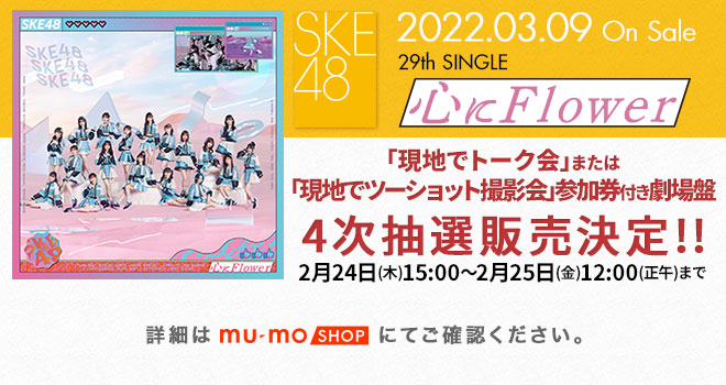 #SKE48 29thシングル「#心にFlower(youtu.be/rFdAFEvTXGg)」を対象としたオンライントーク&デジタル2ショット撮影会にご参加いただけるCDの販売受付は、2月27日いっぱいまでとなります。