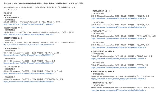 ただいま、SKE48 LIVE!! ON DEMAND月額会員様限定で、過去に実施された特別公演を配信中です。
