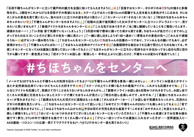 #ちほちゃんをセンターへ に寄せられた皆様の声も一緒に掲出させて頂きましたので、是非ご覧ください💕周りの方へのご配慮も宜しくお願い致します🙇 pic.twitter.com/v3j4e1YsoP