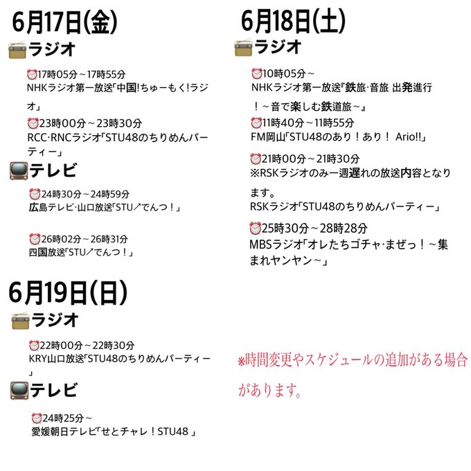 STU48の1週間のメディア情報です📺📻