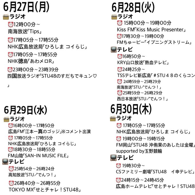 STU48の1週間のメディア情報です📺📻
