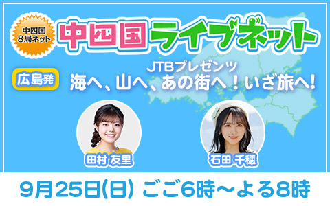 RCCラジオ「中四国ライブネット 広島発 JTBプレゼンツ 海へ、山へ、あの街へ、いざ旅へ!」に #石田千穂 の出演が決定!