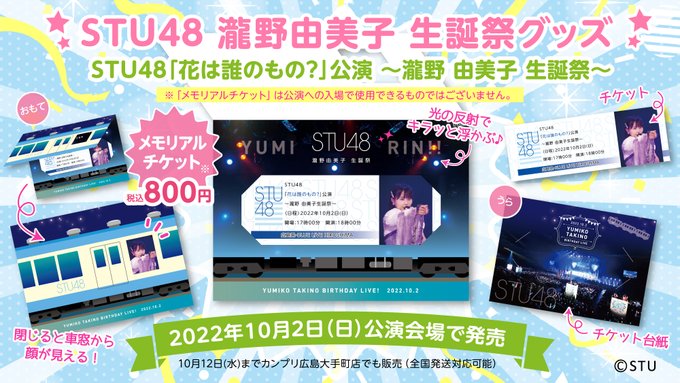 10月2日 (日)STU48「花は誰のもの?」公演〜瀧野由美子生誕祭〜会場にてカンプリ広島大手町店プロデュース生誕祭記念グッズ発売決定🎉