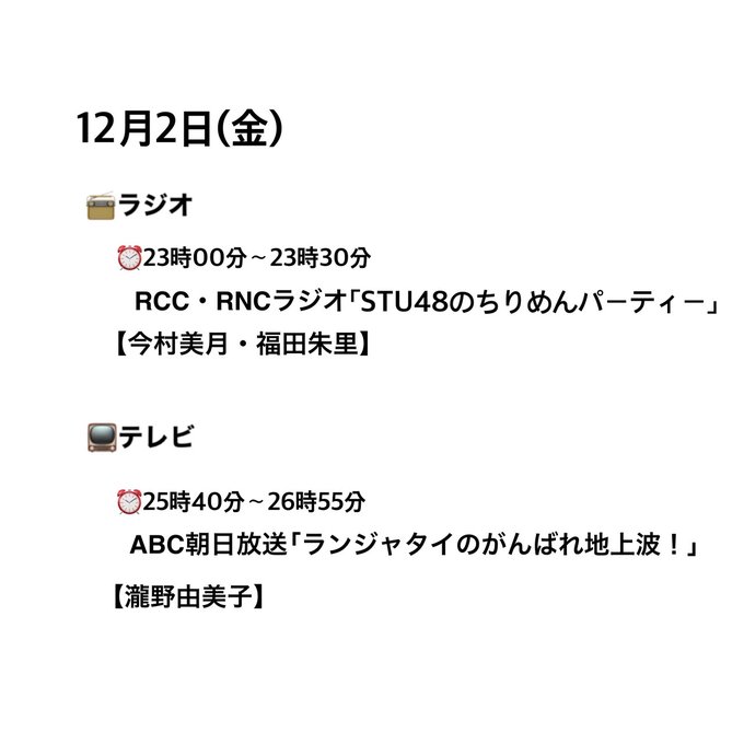 ※放送は12月3日夜11時ごろからを予定しています💁