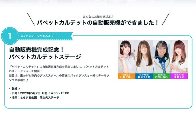 #パペットカルテット のしゃべる自販機が登場します!これを記念して5月7日にとらまる公園でイベントを開催します!