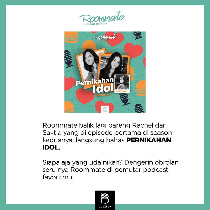 Saktia Oktapyani@Saktiaoktavni -- Yang ditunggu2 nihhhhh😍😍 twitter.com/box2boxid/stat… Box2Box Indonesia Welcome Back, @PodcastRoommate!@Saktiaoktavni dan @rclnatasyaa kali ini kedatangan Riska Amelia buat ngomongin soal idol yang sudah Grad kemudian married!(Sabar ya, Rachel.)Yuk dengerin bersama!open.spotify.com/episode/5Z8ftk… pic.twitter.com/w5fJv6VNbc