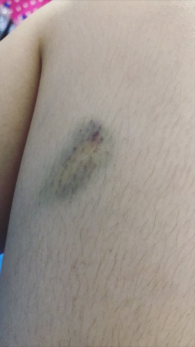 Sania Julia@Julie_JKT48 Pas aku minggir abangnya gak ngeliat ada gerobak gitu trus akhirnya kaki aku ketabrak gerobak, mungkin abangnya kepo juga kali ya. Setelah itu permasalahan belum selesai, yg tabrakan itu mobil sama motor trs berantem kan tibatiba ada yg lempar botol kaca dan kena kaki aku..