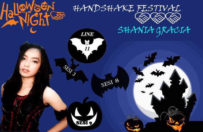 Btw, handshake event "Halloween Night" sebentar lagi lhoo! Jangan lupa mampir ke bilik ShaniaGracia ya!😆💁 pic.twitter.com/yOUpsxBCKi