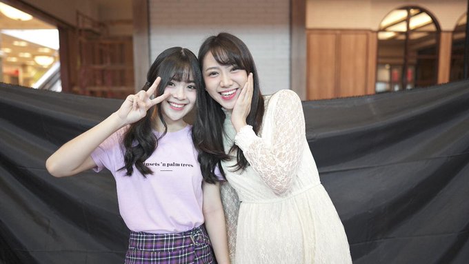 Shania Junianatha@shaniaJKT48 @soniaJKT48 Astaganaga. Love you too Sonia. Selamat ya masuk UG. Dulu cita2nya masuk lagu bareng lagi sekarang kesampean yaaa sebelahan lagi muah 😍😘