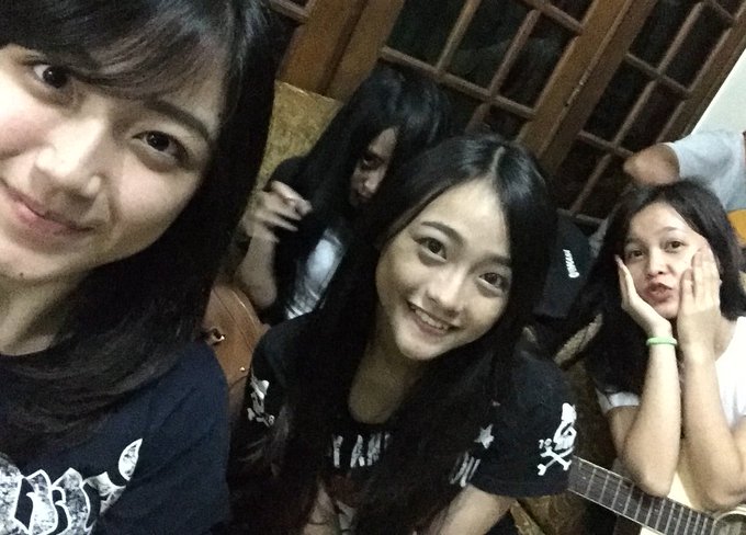 Selesai latihann, masih menunggu dijemput ngobrol ngobrol lucuk dulu sama @Ayen_JKT48 @Nat_JKT48 @Nadila_JKT48 pic.twitter.com/s6cRZh945R