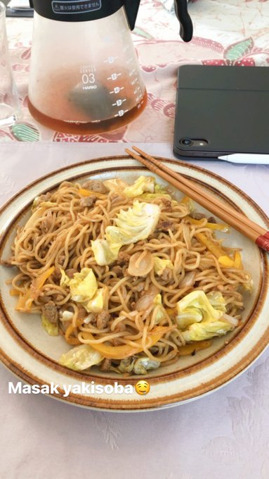Gara-gara self quarantine aku jadi rajin olahraga di rumah sampe pegel ototnya ga bisa naik tangga😂 trus juga jadi belajar masak sama okaasan🥰 kemarin masak hamburg, pagi ini yakisoba, rencananya nanti malam mau bikin karaage🤤