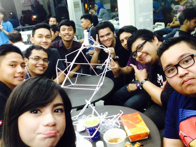 tadi aku abis bukber di lawson!! terus lomba bikin menara dr sedotan >___< ahahhaha pic.twitter.com/5g8flg2EQT