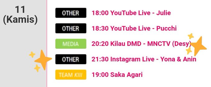 Besok ada @Julie_JKT48 @Pucchi_JKT48 @Yona_JKT48 dan @R_AninJKT48. Jangan terlewatkan ya!